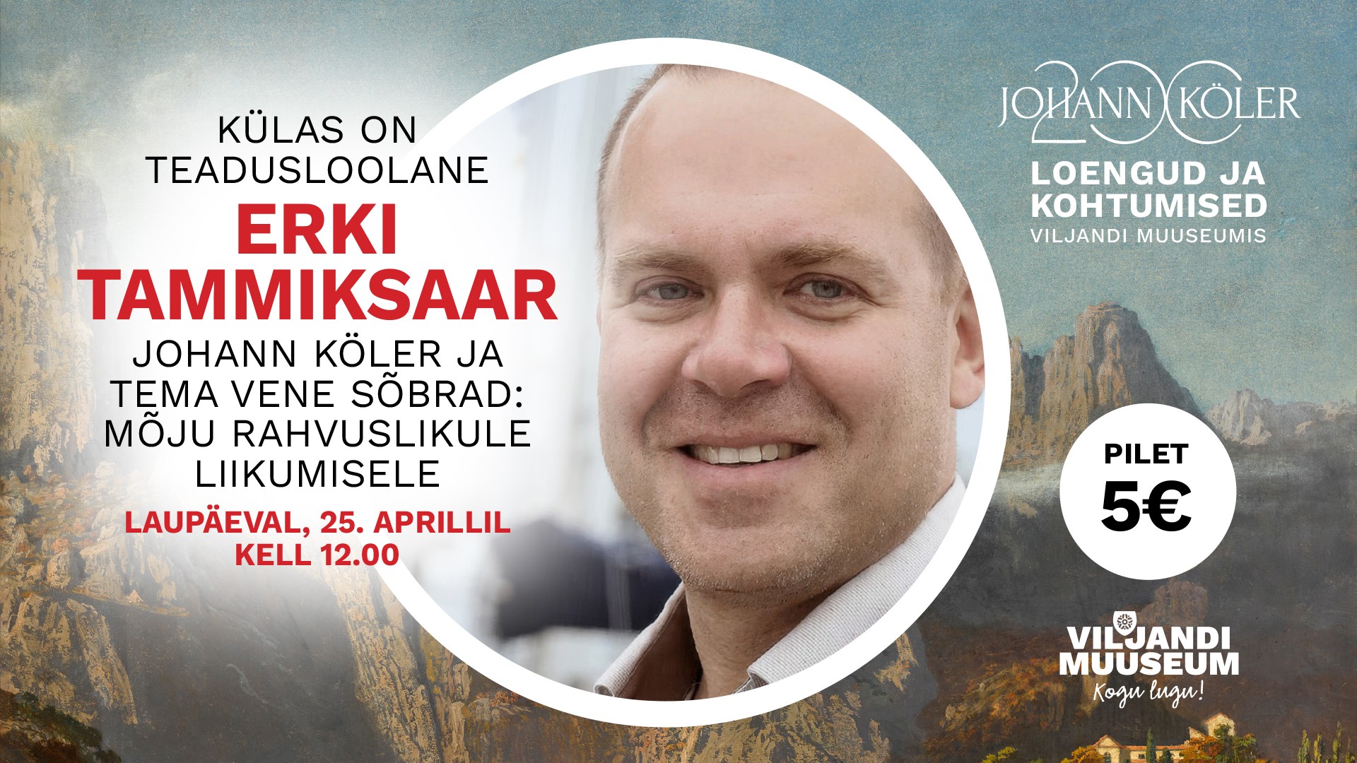 Laupäeval, 25. aprillil kell 12 on huvilised oodatud Viljandi muuseumisse kuulama Erki Tammiksaare loengut „Johann Köler ja tema vene sõbrad – mõju eesti rahvusliku liikumise arengule“.