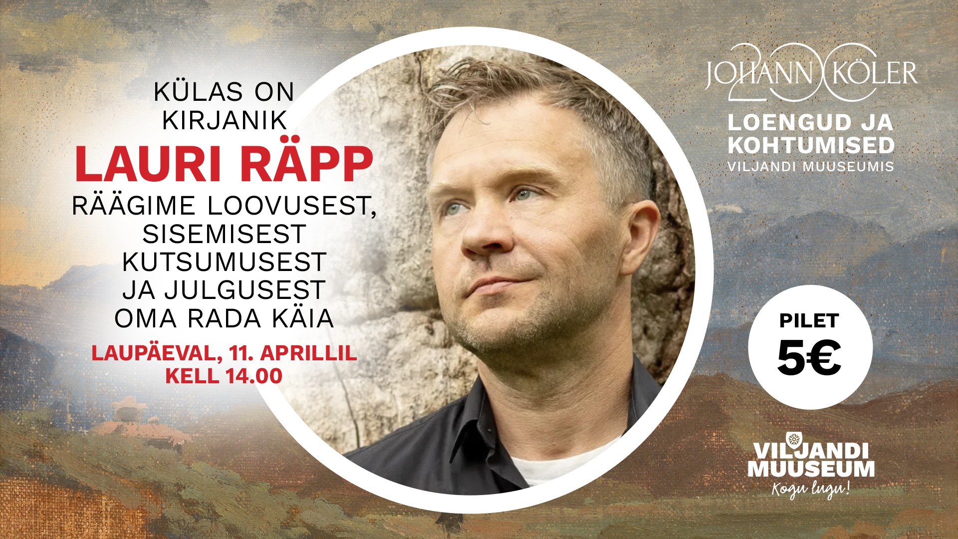 Laupäeval, 11. aprillil kell 14 on huvilised oodatud Viljandi muuseumisse kohtuma kirjaniku ja luuletaja Lauri Räpiga.
